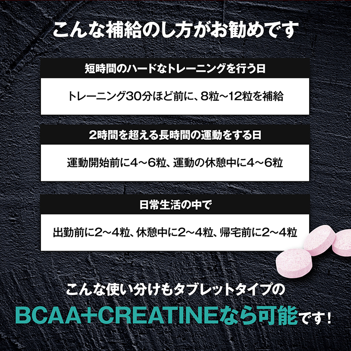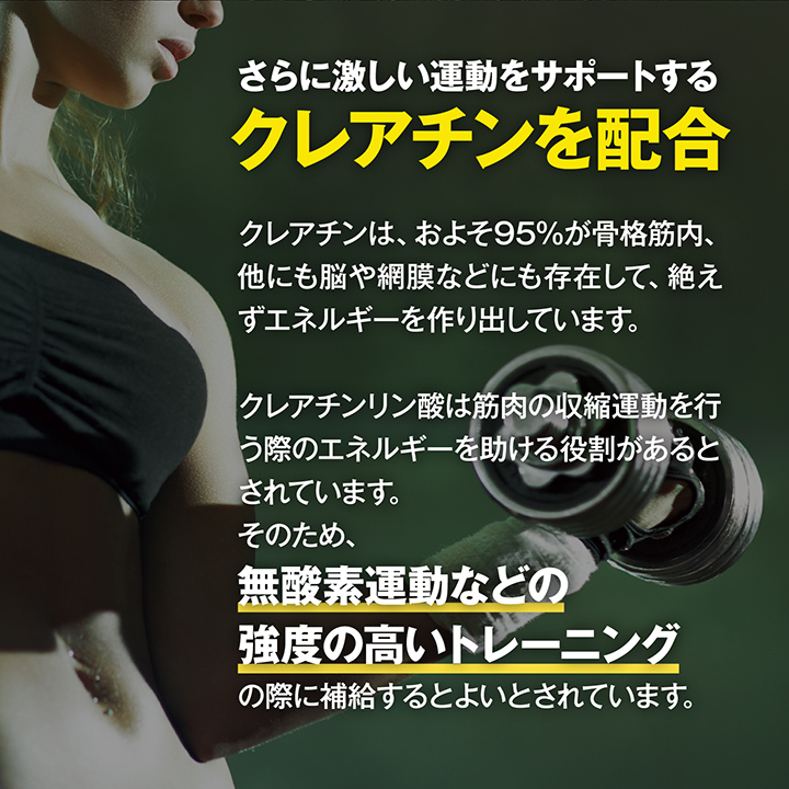 さらに、クエン酸やクレアチンなどトレーニングに必要な成分もしっかり摂取できます。