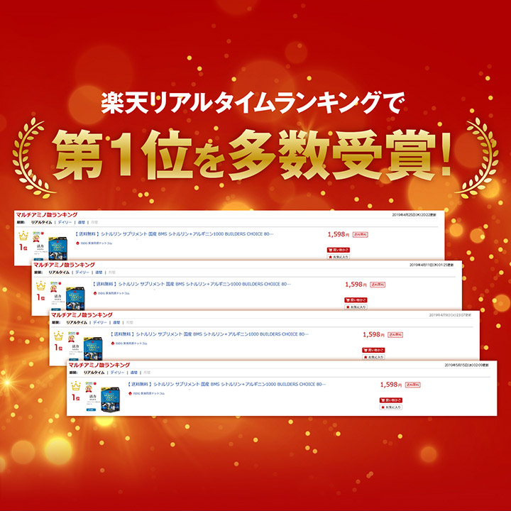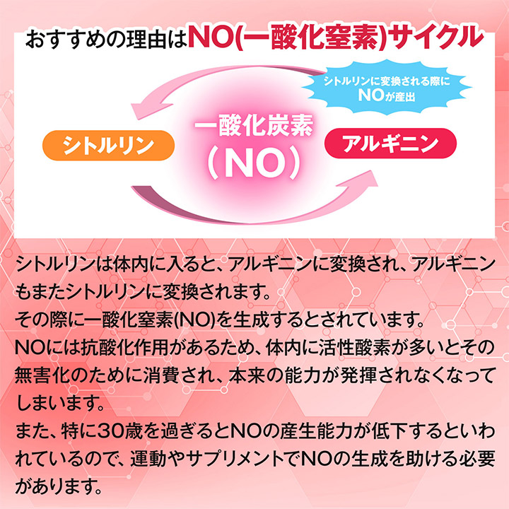 L-シトルリン、酵母/L-アルギニン、ゼラチン、結晶セルロース、ステアリン酸カルシウム、微粒二酸化ケイ素、V.B1、V.B2、V.B6、V.D、着色料(カラメル)
