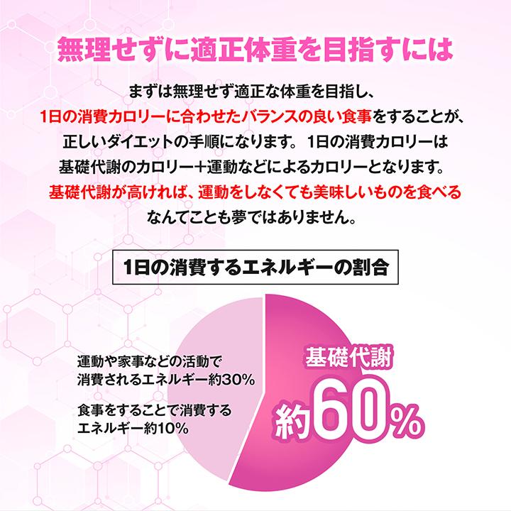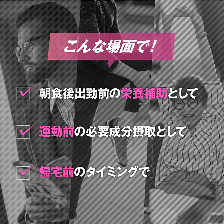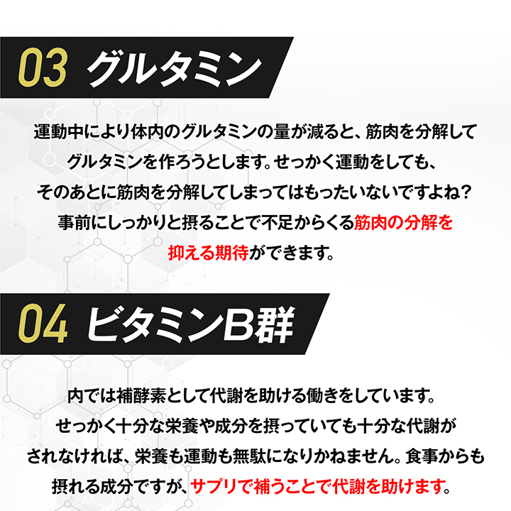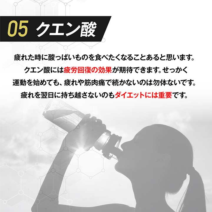 効率の良いサイクルと燃焼をサポートし、運動によるボディメイクパフォーマンスを向上。ダイエット目的で運動をしている方、フィットネスでシェイプアップに励む方を応援します。