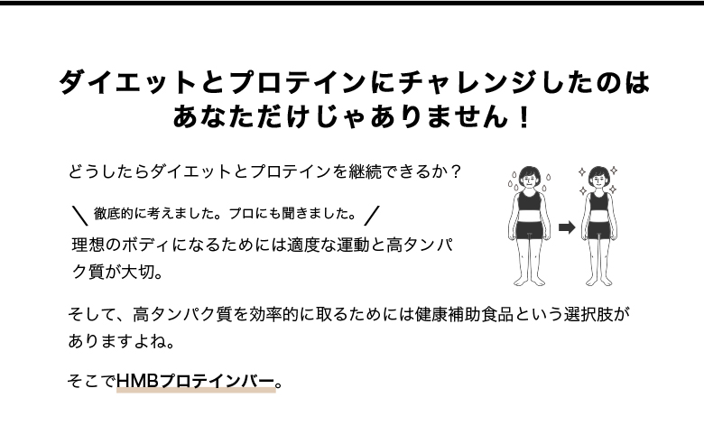 トレーニングのサポートとしてHMBをもっと手軽に、美味しく食べられるよう、バータイプに仕上げました。