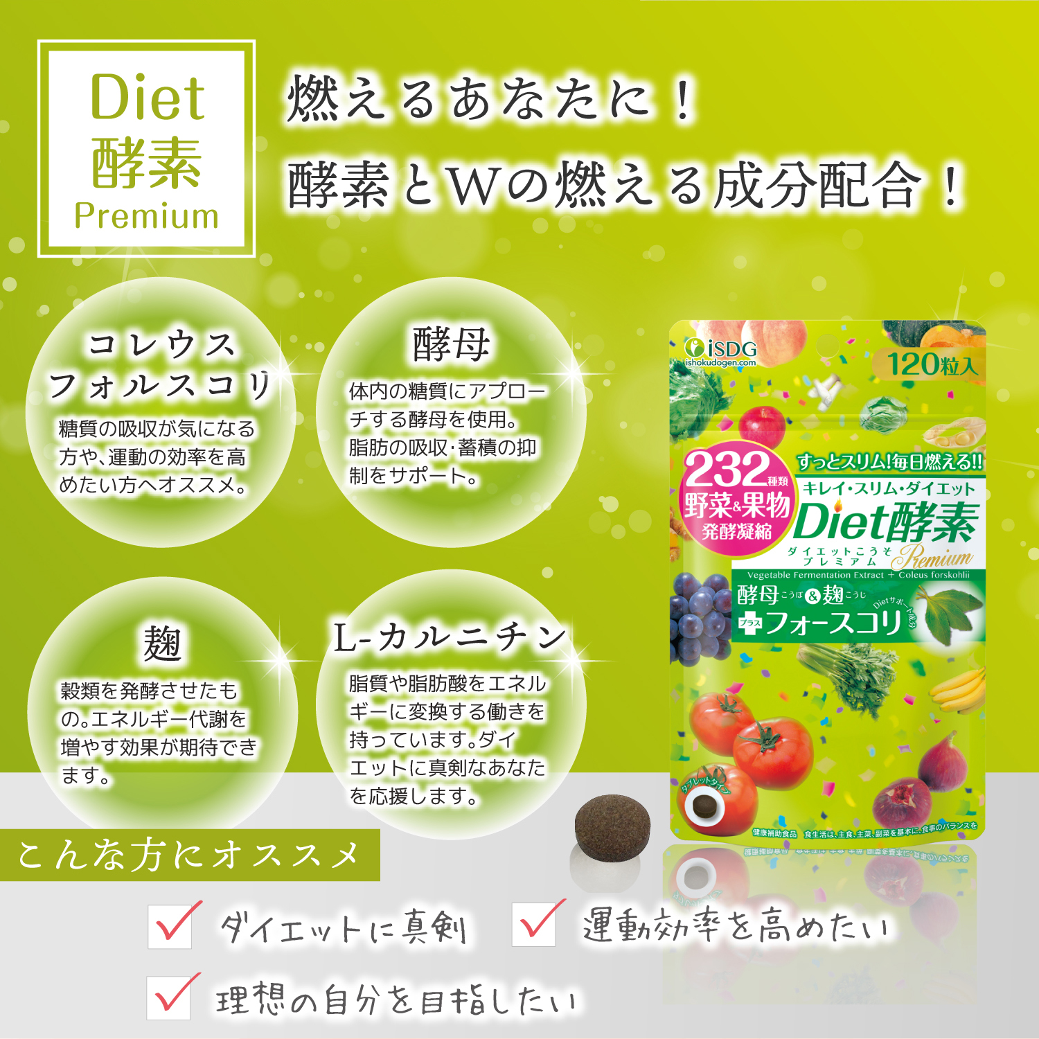植物発酵エキス末[難消化性デキストリン、植物発酵エキス(黒糖、リンゴ、玄米麹、オリゴ糖、トマト、キャベツ、ブロッコリー、バナナ、モモ、人参、柿、コンブ、ヒジキ、スイートコーン、キウイ、大豆、ヤマブドウ、大根、カボチャ、ゴボウ、パインアップル、ウメ、レンコン、キュウリ、ナス、ブドウ、ミカン、レモン、ホウレン草、ピーマン、小松菜、チンゲン菜、アスパラガス、セロリ、パプリカ、ヨモギ、イチゴ、ブルーベリー、赤タマネギ、マイタケ、エリンギ、シイタケ、マッシュルーム、白インゲン豆、白花豆、紫花豆、赤インゲン豆、米ぬか、アマランサス、赤米、黒米、キヌア、タカキビ、モチアワ、モチキビ、プルーン、イチジク、ウコン、ワカメ、キクラゲ、大麦若葉、ライム、ギンナン、コーヒー、ココア、ジャスミン、トチュウ、ショウガ、シソ、ミョウガ、豆苗、カイワレ大根、パセリ、ゴーヤ、セリ、ミツバ、ケール、オオバコ、スギナ、ビワの葉、メグスリノキ、桑の葉、クミン、ローレル、フキ、菜の花、クチナシの実、根コンブ、バジル、月見草、柿の葉、イチョウ葉、グァバ葉、ヒノキ、山椒、ナツメグ、ミント、ユズ、キンカン、ナシ、イヨカン、カリン、ペコロス、マスタードの芽、白アスパラガス、白シメジ、レイシ、モロヘイヤ、キイチゴ、ブラックベリー、イヌトウキ、アカメガシワ、ワラビ、クマザサ、アイブライト、ヒバマタ、アカモク、スイカ、紫ムギ、ラッキョウ、プリンスメロン、スモモ、冬イチゴ、ビタミン菜、コゴミ、フキノトウ、タラの芽、ヤマモモ、アケビ、ヤマイチゴ、オランダイチゴ、クワイチゴ、ヤマグミ、桜の花、グミ、スダチ、カボス、オレンジ、アボカド、アセロラ、洋ナシ、カムカム、アサイー、カブ、タマネギ、ワサビ、もやし、ジャガイモ、サツマイモ、サトイモ、ニンニク、白菜、春菊、レタス、フキ、水菜、サンチュ、サラダ菜、紫キャベツ、サニーレタス、アサツキ、芽ネギ、カリフラワー、食用菊、タケノコ、ズイキ、ウド、白瓜、冬瓜、シシトウ、ズッキーニ、オクラ、明日葉、チコリ、キャッサバ、赤カブ、ヤーコン、アルファルファ、ビーツ、紫イモ、ラディッシュ、青えんどう、カンゾウ、ドクダミ、マタタビ、ローズマリー、カツアバ、カルケージャ、紫イペ、シャペウデコウロ、パタデヴァカ、パフィア、レモングラス、マテ、ステビア、ガラナ、綿実、ペドラウメカ、キャッツクロー、シナモン、アマチャヅル、クローブ、ガジュツ、ウイキョウ、ムイラプアマ葉、ピカオプレト、ブラジルナッツ、アーモンド、カシューナッツ、白ゴマ、小豆、枝豆、えんどう豆、紫インゲン豆、黒ゴマ、黒インゲン豆、エジプト豆、レンズ豆、エノキタケ、シメジ、アガリクス、青のり、モズク、アオサ、アカサ、大麦、はと麦、キビ、ヒエ、アワ、えん麦、ライ麦、白米、サトウキビ)]、デキストリン、L-カルニチンフマル酸塩、コレウスフォルスコリエキス、穀物麹(大麦、アワ、ヒエ、キビ、タカキビ、紫黒米、米)、パン酵母/D-ソルビトール、セルロース、ショ糖脂肪酸エステル、微粒二酸化ケイ素、セラック