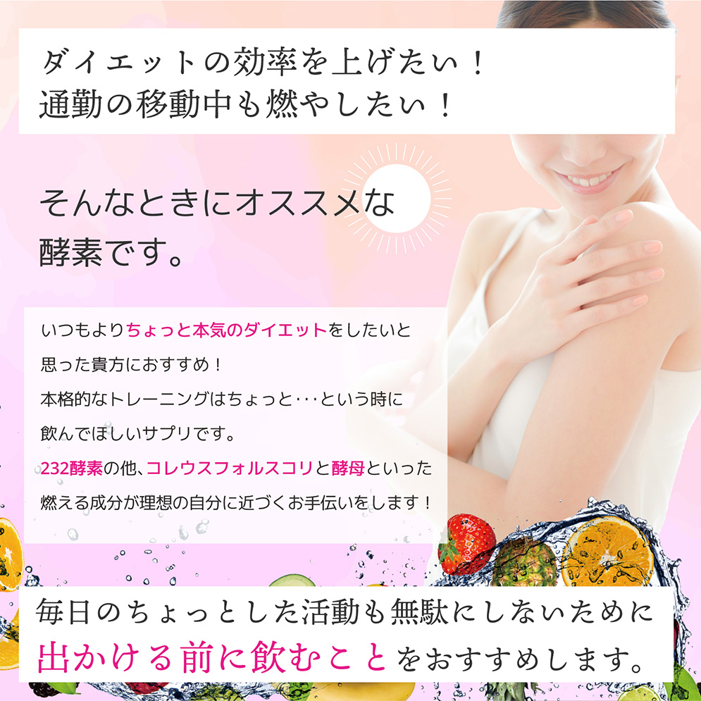 ダイエットに燃える方のサポート成分のコレウスフォルスコリと酵素・酵母&麹の組合せで、めぐりボディーに導いてくれます。