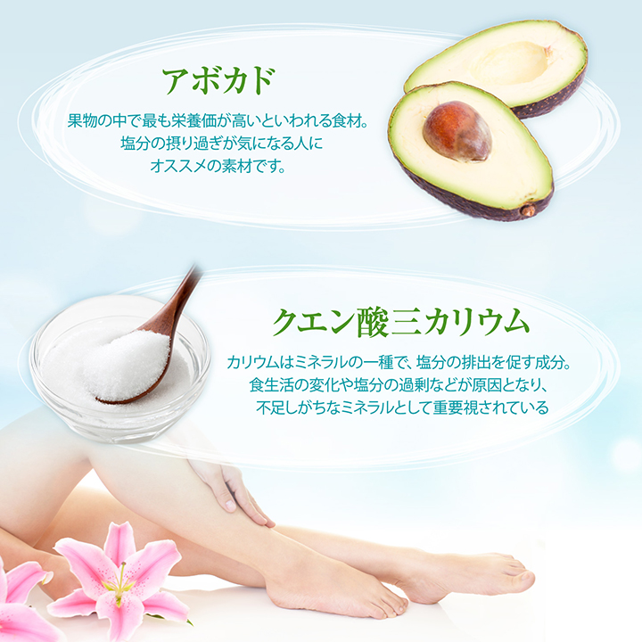 メリロートエキス末、L-シトルリン、アボカド粉末、クエン酸三カリウム